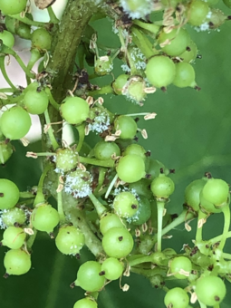 A kórokozó levél- es fürtmaradványokban, úgynevezett oosporákkal telel át. Az oospórák csírázásával makrosporangiumok fejlődnek, az ezekből rajzó zoosporák csapadék hatására a levelekre jutva csíratömlőt fejlesztenek és a sztómán át behatolnak a levél szövetébe, ahol a micélium növekedésnek indul. A klorofill elbomlásával ez a folyamat okozza az első látható tünetet a levél színén, az úgynevezett olajfoltot. A levél fonókán pedig megjelenik a fehér színű sporangiumtartó gyep, ahonnan újabb csapadék hatására, folytatódik a fertőzés. A folt végül bebarnul, elszárad.