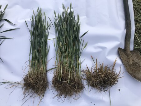 A szakmai érdekességnek szánt késői vetésidős parcellák gyökértömegét novemberben még nem tudtuk mérni, és sokáig látványosan elmaradt a korai vetésidős búzáktól. Nagy terméskiesést vállalnak be a novemberi vetést választó gazdák, és a hideg téli talajban a starteres foszfor sem segítheti a gyökeresedést. A kevesebb P-t tartalmazó PS Vital (st3,4) és PS Perfect (st7) kezelések sem maradtak el nagyon a standard Pannon Starter Megától, sőt a 20 kg/ha PS Vital parcellánk gyökértömeg-növelése volt a másik szignifikáns kezelésünk.
