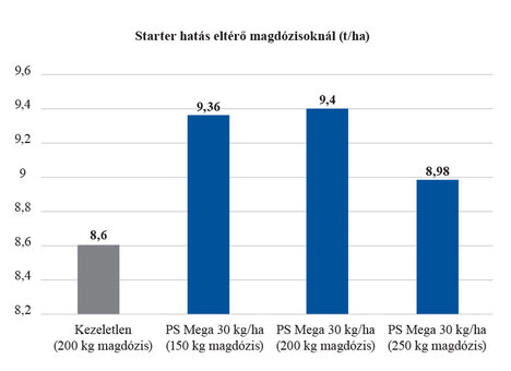 Az agrotechnikai összehasonlítások során a pannon starteres 150-200-250 kg/ha magdózis-beállítások közül a legsűrűbbre vetett búza lett a leggyengébb, míg a 150 és 200 kg/ha-os starteres vetések gyakorlatilag azonos szinten teremtek. A november közepi vetésidő esetén nem tapasztaltunk terméskülönbséget a starterezés hatására, és első pillantásra meglepően jó, 6 t/ha körüli termést mértünk, viszont ez 25-30% terméskiesést jelentett csak a késői vetésidő tényező hatására! A kalászos termesztésben a starterezés termésnövelő hatása korai vetésidő esetén egyértelműnek látszik.