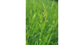 Formagazdag, szőrtelen, jól bokrosodó, erőteljes növény. Az első levelek begöngyöltek, egyenesen, felállóan növekednek. Levelei szélesek, szélük éles, de nem fogazott, csak a levélhüvely közelében szőrözött. Nyelvecskéje nincs, a levéllemez középső ere a tövénél pirosas színezetű. Jellemzője, hogy a levélhüvely, és így a szártag laposan összenyomott. Buga virágzata laza, a virágok fürtszerű kalászokba rendeződnek. Júniustól késő őszig virágzik. Rengeteg magot érlel, négyzetméterenként akár több ezret. Az érett magvak csírázóképességüket több évig megtartják.