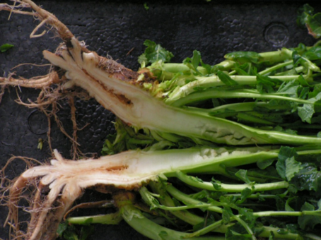 A bór hiánytünete a növények vegetatív szakaszában általában mindig a legfiatalabb részen, a hajtáscsúcson alakul ki először. A repce levelei kifakulnak, lankadttá válnak, a fiatalabb levelek széle hullámosodik, az idősebbeké a foszfor-felvétel zavara miatt vöröses-lilássá válik. Jelentős bórhiány esetén a növény csúcsa elhal, az újabb hajtások a levelek hónaljából törnek elő, és később, ha a bórt nem pótolják, azok is elpusztulnak. Emiatt a növény nem képes a vegetatív szakaszból a generatívba jutni.
